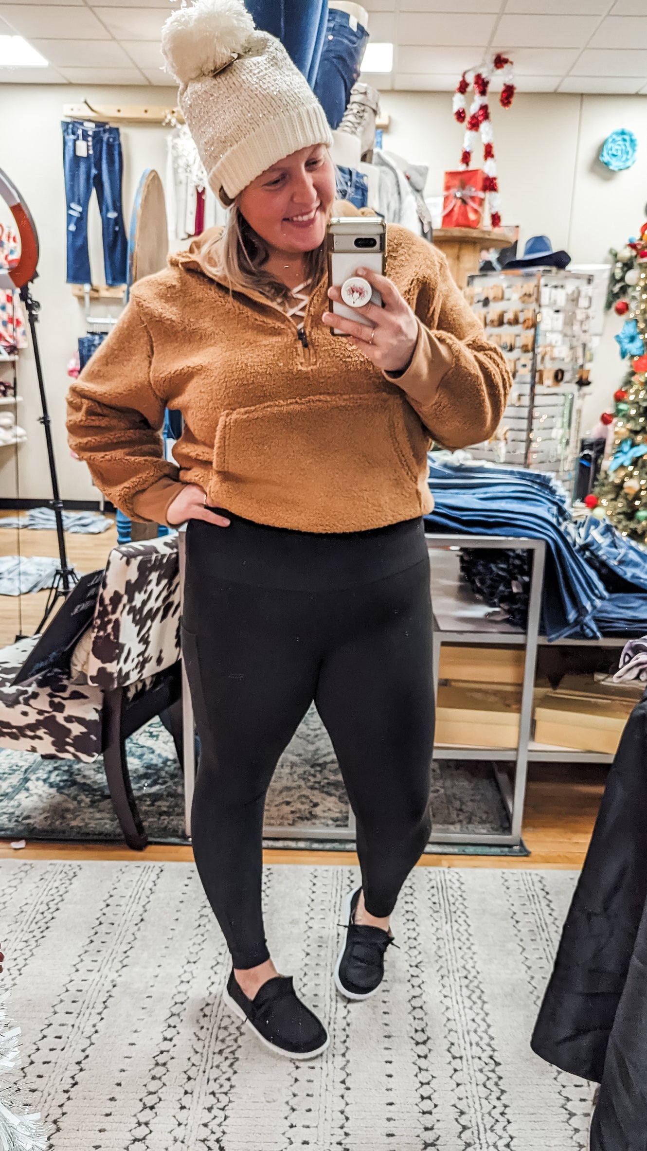 Your favorite legging with an added bonus for the colder months… a super cozy fleeced lined interior! It’s not bulky but will give you extra warmth when the snow is flying. Great if you’re always cold as well!