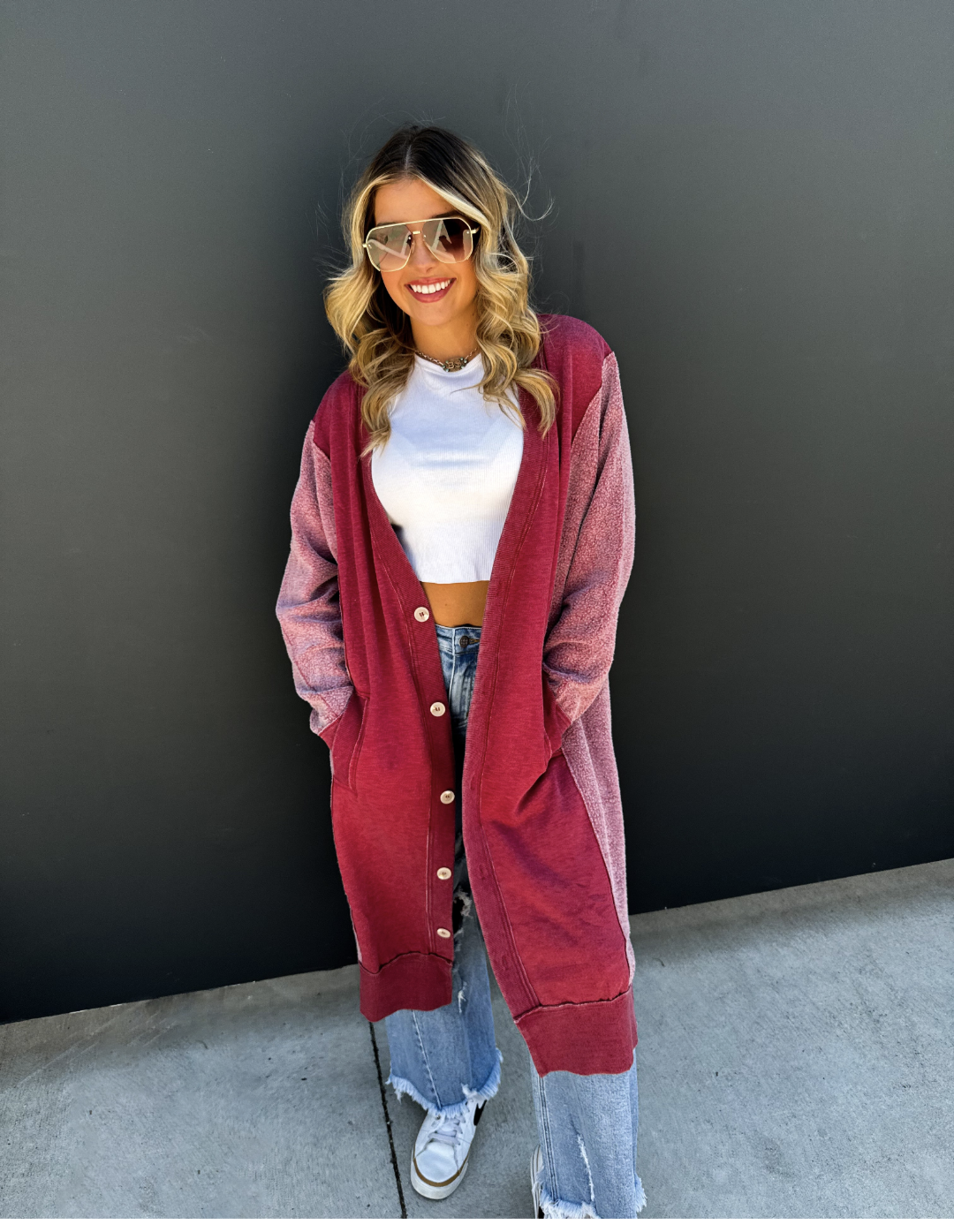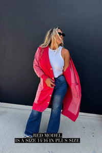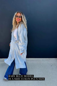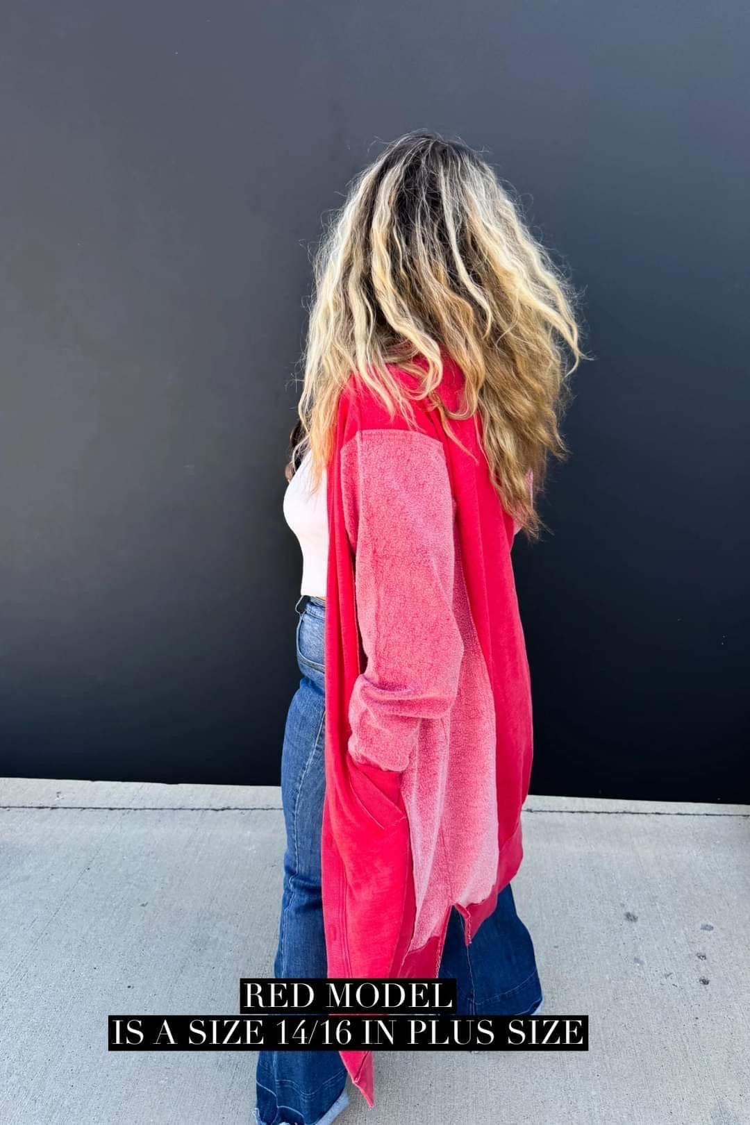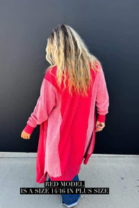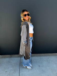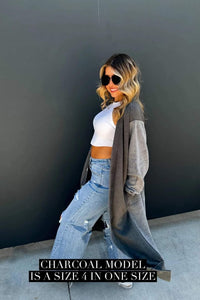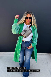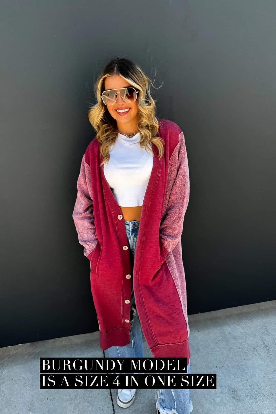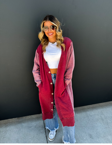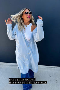Made with luxurious detailing this long cardigan features functional buttons, reverse fabric detailing on the sides, and pockets! Perfect for those chilly days, this cardi adds style and practicality to your wardrobe.
