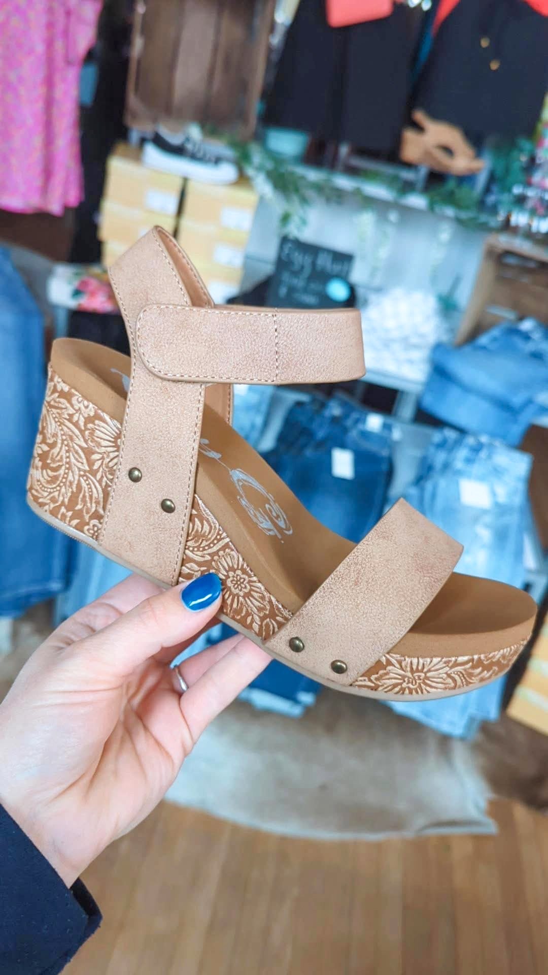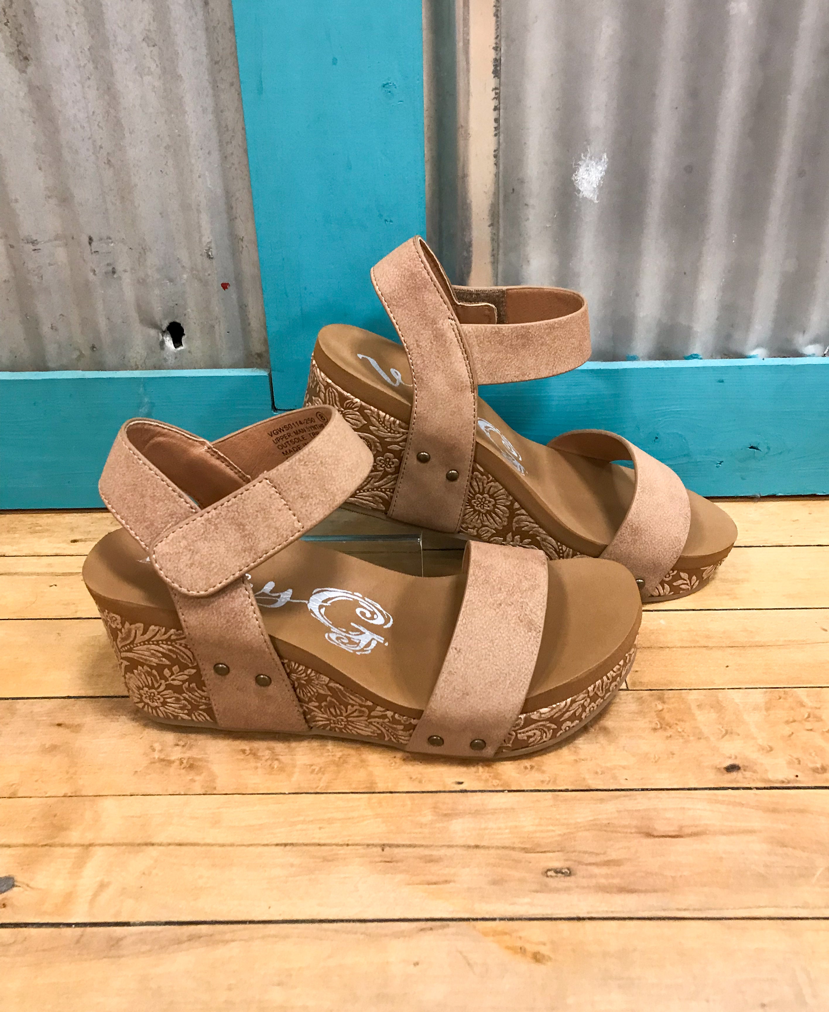 This wedge offers luxurious comfort with its ultra comfy foam footbed and wedge heel, as well as convenience with its velcro strap. Its delightful design is sure to attract attention, crafted in a beautiful neutral hue with detailed tooling for timeless style.